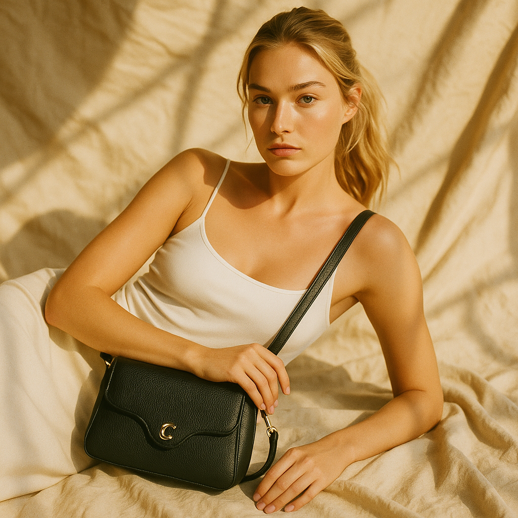 Coccinelle „C-ME“ Crossbody Bag – Schwarz mit goldfarbenem C-Logo