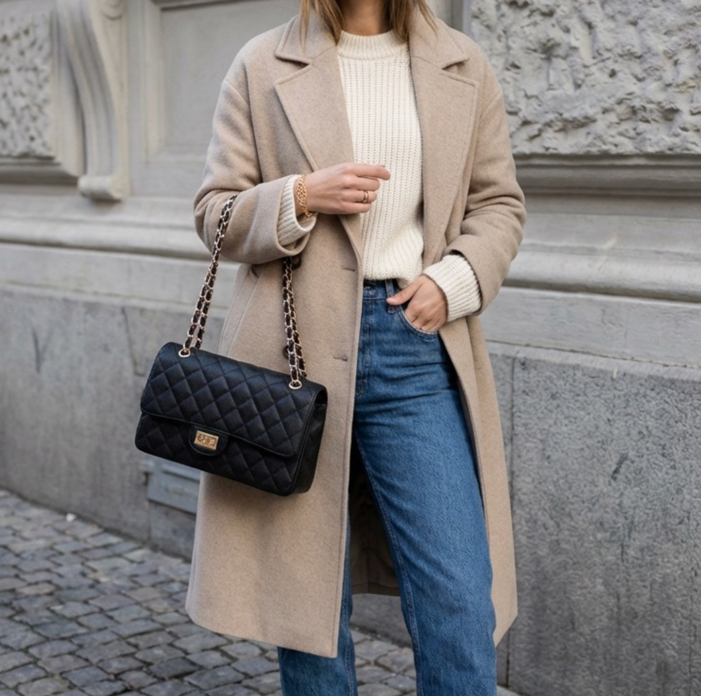 Diese Crossbody Bag vereint ikonisches Quilting-Design mit hochwertigem, weichem Echtleder und einer edlen Metallkette – inspiriert vom Look moderner Paris-Chic Fashion.